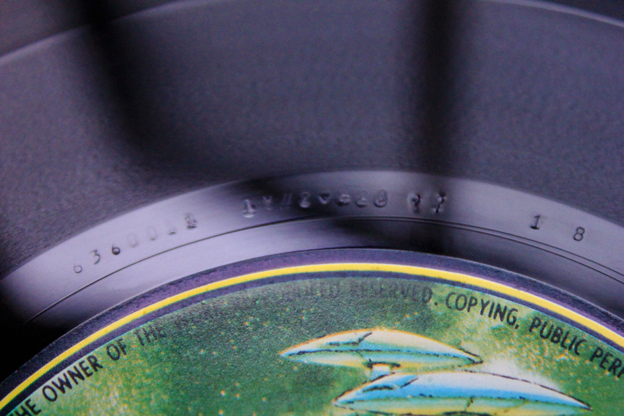 On initial visual inspection this looks superb in my opinion! and still retains its sheen from new! I played this to play grade and record at very loud volume on a top system! Note: If I look hard at the playing surface angled to the light there are just tiny surface marks/ inperfections and minor marks any other marks would be sleeve removal only. At least there are no audio sounding marks or blemishes that would cause any loud constant clicks or pops other than the odd static type tick or ticks in isolated places only! The vinyl lays perfectly flat on the turntable.