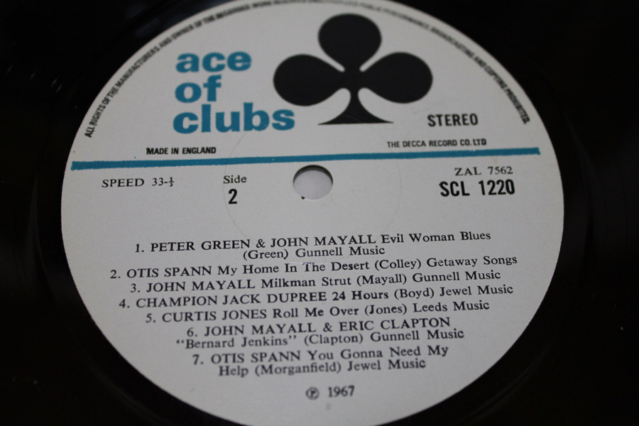 These are the original Ace Of Clubs Labels: Any spidering can barely be seen angled to the light and there is little if no spindle wear the hole is perfectly round. This has obviously only had very minimal play in my opinion.